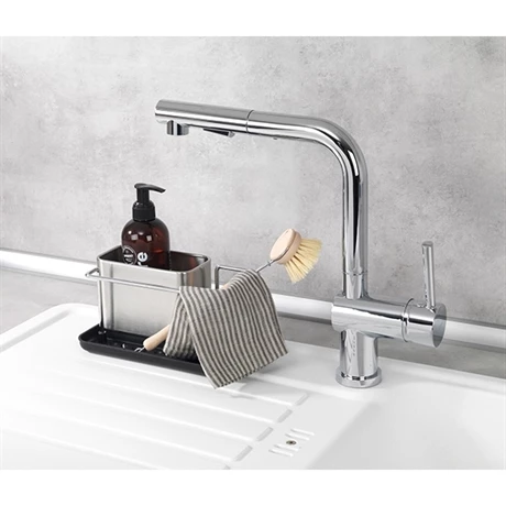 Rangez votre espace de nettoyage grâce à l’organisateur pour évier inox. Conçu de manière astucieuse cet organisateur prévoit tous les espaces nécessaires pour ranger votre éponge, liquide vaisselle, paille de fer…