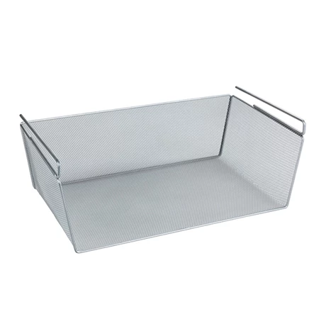 A suspendre sur une étagère, ce panier résistant en métal permet de ranger des vêtements, du linge, de la vaisselle, des aliments en offrant un espace de rangement supplémentaire.