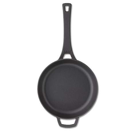 La poêle à frire en fonte émaillée 24 cm Angus est produite par l’entreprise familiale allemande Kela qui développent des produits de grande qualité alliant design et fonctionnalité. Issue de l’alliage du fer et du carbone, la fonte est un matériau sain, inusable, résistant qui se montre naturellement antiadhérent. Cette poêle monte rapidement en température et offre une diffusion optimale de la chaleur sur toute sa surface grâce à la fonte, matériau réputé pour être très précis en termes de cuisson, découvrez une qualité de cuisson parfaite. Une couche d’émail brut est utilisée en guise de revêtement de la fonte lui apportant une belle esthétique et permettant, à haute température, des fritures croustillantes au goût intense. Elle s’avère idéale pour poêler des poissons moelleux à cœur et saisir des viandes toujours juteuses.