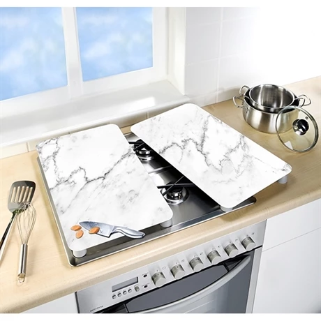 Avec le set de 2 couvres-plaque motif marbre apportez une touche d’Ă©lĂ©gance Ă Â votre cuisine ! En plus de cet aspect raffinĂ© et travaillĂ© de marbre, ces couvres-plaque protège efficacement votre cuisine. Pratiques, elles sont fabriquĂ©es en verre trempĂ© et fonctionne sur tous types de plaque.Â