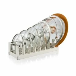 Pour une cuisine aux placards bien organisés, utilisez notre support pour couvercle 8 places : pouvant accueillir un large panel de diamètre, de 14 à 32 cm de diamètre, il vous évitera d’encombrer vos étagères avec des couvercles parfois compliqués à ranger.
