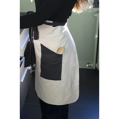 Le tablier Pebbly est en coton bio. Son coloris naturel est rehaussé de gris ardoise sur les éléments cousus pour lui ajouter une touche d’originalité.